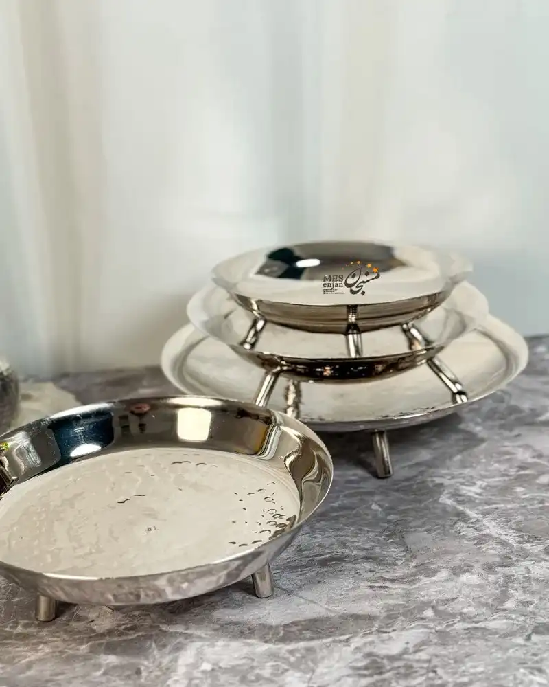 داخل کار بهصورت چکشی طراحی شده که جلوهای خاص و اصیل به این هفت سین مسی با روکش کروم میبخشد. ترکیب درخشندگی کروم و طرح چکشی، آن را به گزینهای لوکس و متفاوت برای نوروز تبدیل کرده است.